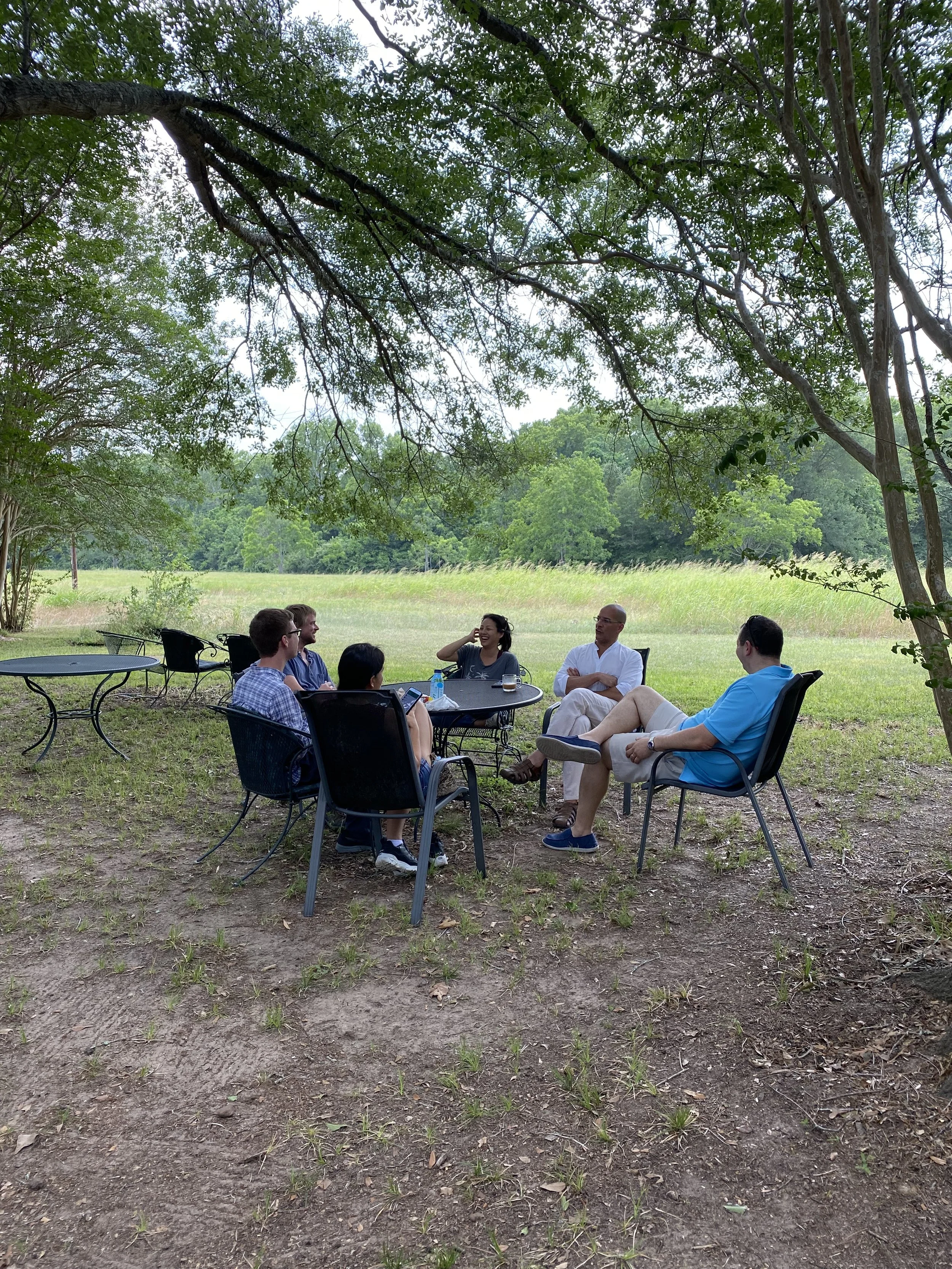 Grounds include severals seating areas for groups to gather and talk as well as space for participants who wish to stay overnight in tents. Those looking for more quiet reflection can enjoy walking paths through the Texas Blackland Prairie, groves of mature sycamore and oak trees and the labyrinth.