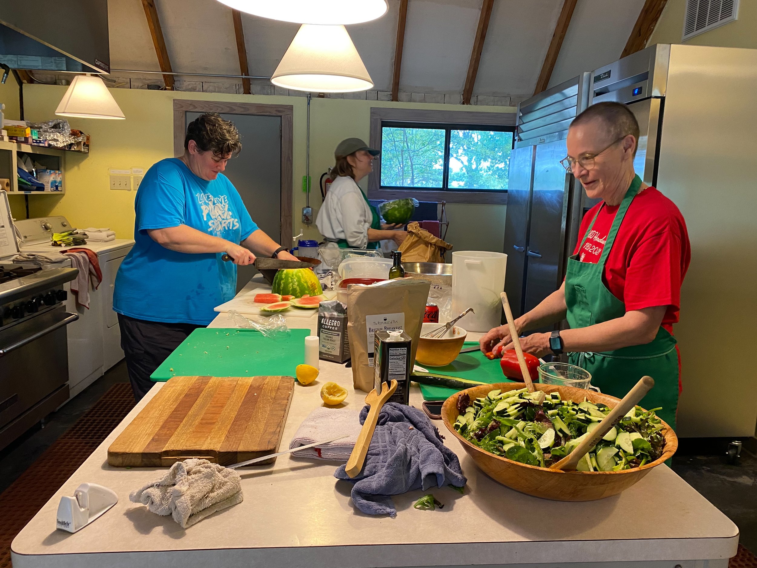 Our kitchen is fully stocked with all the necessary cooking equipment for groups to cook their meals. Kitchen includes a 10 burner gas stove and two ovens, two commercial refrigerators and a stand up freezer. Food, snacks and meal preparations are the responsibility of group organizers.